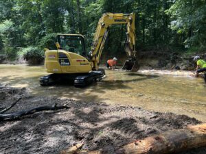 Starting in 2024, the PA Fish and Boat Commission’s (PFBC) Habitat Division has been installing new sediment erosion control and fish habitat structures on the Catch and Release Fly Fishing Only section of Conewago Creek. The upper half of the section has been completed, with the remaining stretch of the creek to be worked on in 2026 and 2027.